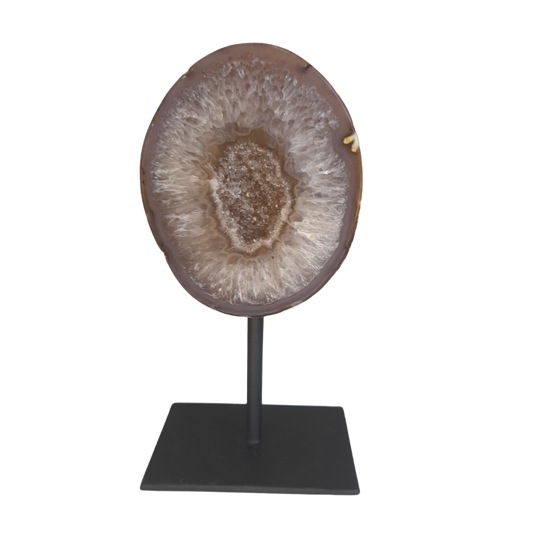 Deze agaat geode op standaard is een krachtig en decoratief natuurstuk met een luxe uitstraling. De open geode onthult een... Lees meer
