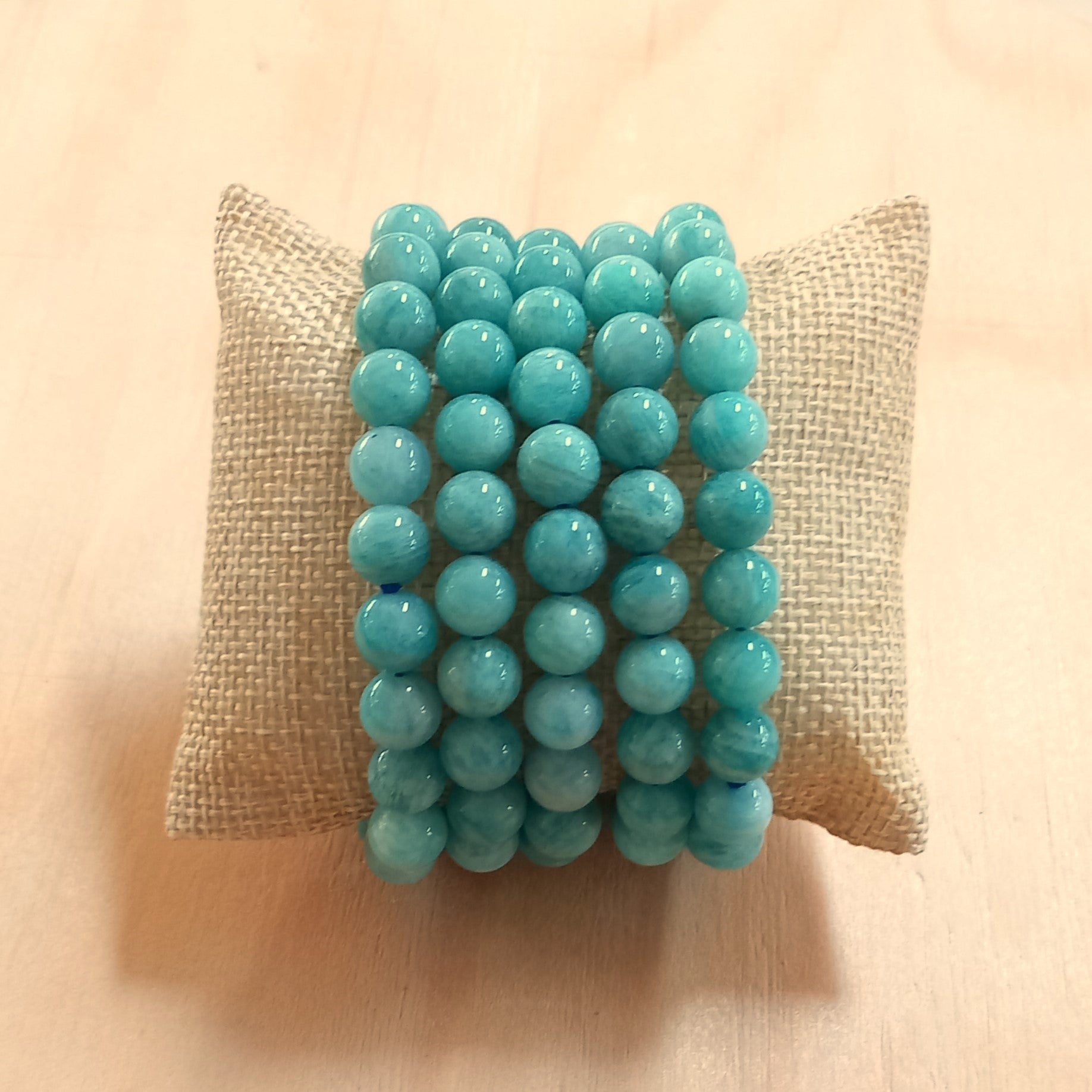 Amazoniet ronde 8 mm. kralen van goede tot hoge kwaliteit. Geregen op een dubbel elastiek. Het elastiek is van hoogwaardige... Lees meer