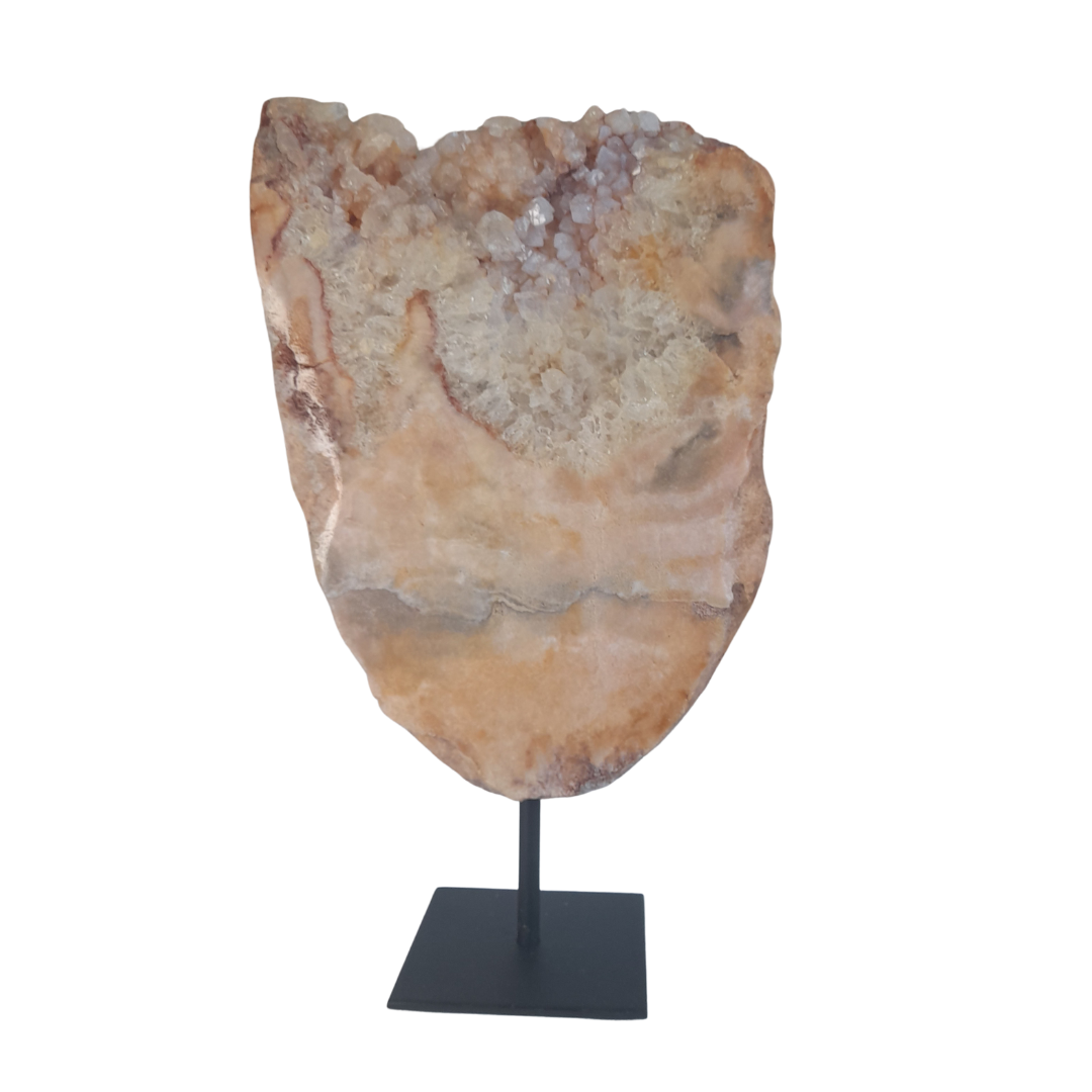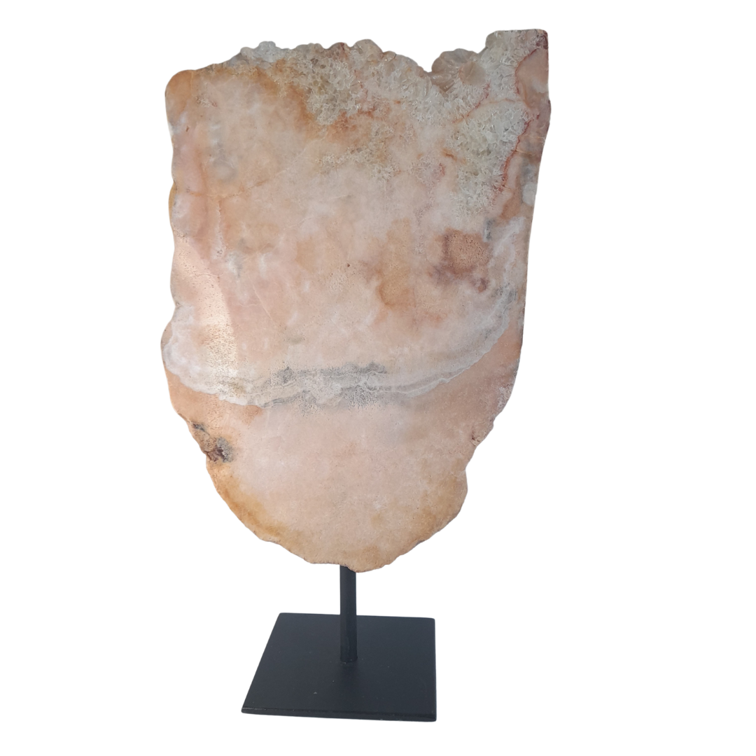 Deze roze amethist/chalcedoon plak op standaard is een exclusief en decoratief natuurstuk met een zachte, luxe uitstraling. De bijzondere roze... Lees meer